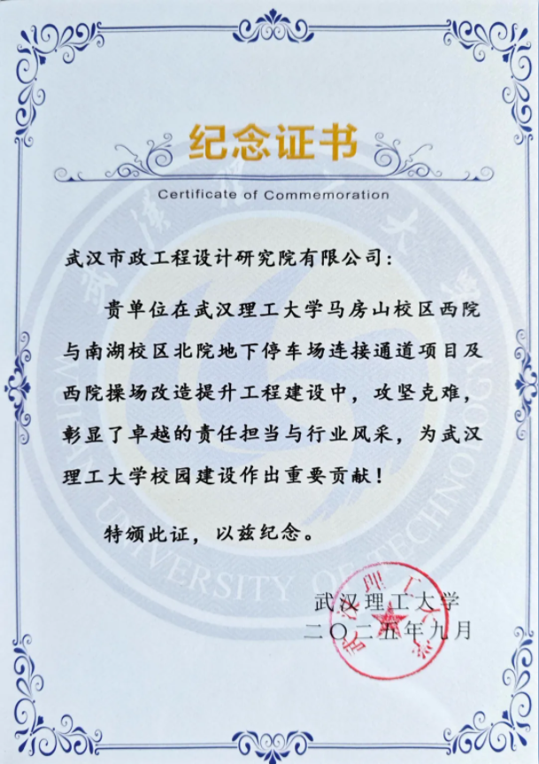 2025年9月6日上午,由武漢市政院設(shè)計的武漢理工大學(xué)馬房山校區(qū)西院與南湖校區(qū)北院地下停車場連接通道項目(以下簡稱“武漢理工大學(xué)地下通道”)通車儀式隆重舉行。洪山區(qū)區(qū)委區(qū)政府主要領(lǐng)導(dǎo)、武漢理工大學(xué)領(lǐng)導(dǎo)及各參建單位代表共同出席,見證這一重要時刻。儀式上,洪山區(qū)區(qū)委主要領(lǐng)導(dǎo)頒發(fā)“紀念證書”,表彰武漢市政院等參建單位在項目設(shè)計與實施過程中作出的重要貢獻。